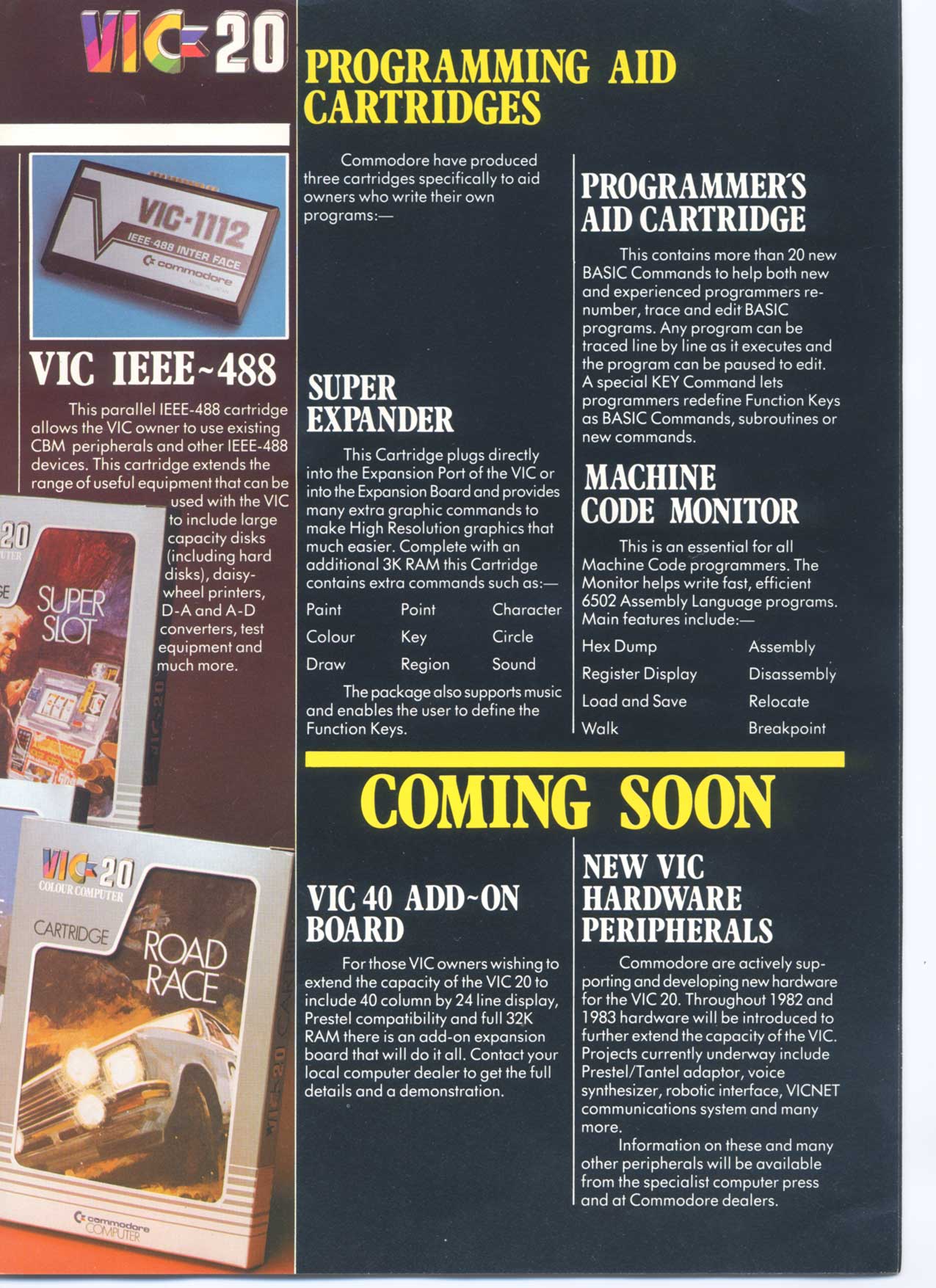 Here are some more scans of some further promotional literature I found amongst my recent Vic 20 purchases. There are a couple of items shown that I never knew existed, probably just as well as I’d have lusted after them but would never have been able to afford them, especially the memory expansion board.