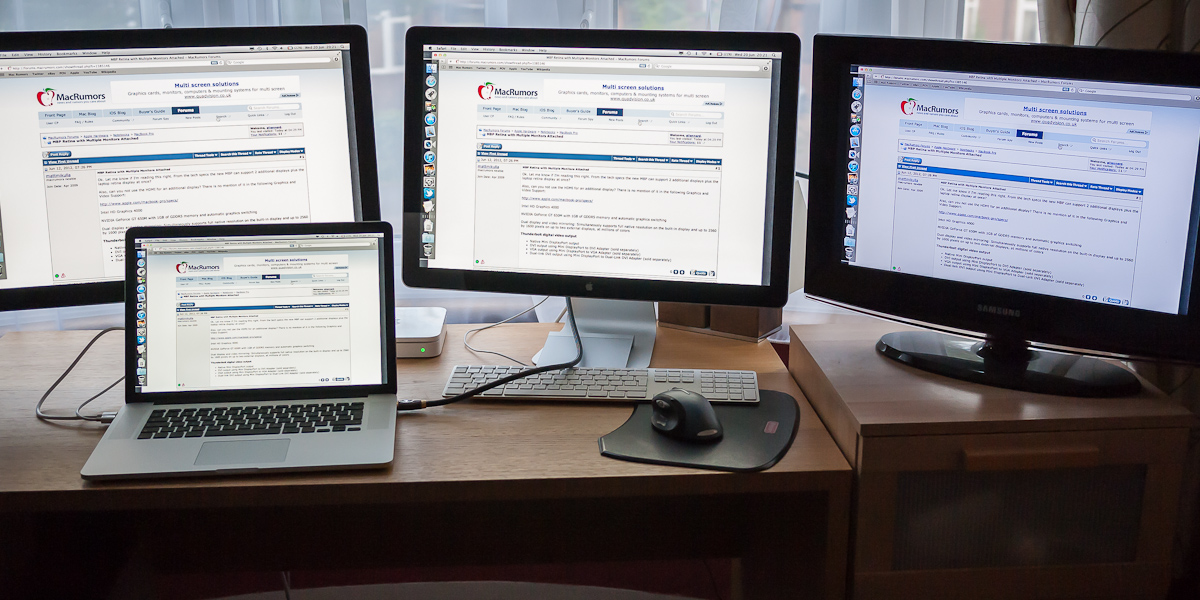 With two Thunderbolt ports and an HDMI port it occurred to me I could try to hook up three external displays. I plugged my two 24″ Apple Cinema Displays into the Thunderbolt ports and a Samsung TV into the HDMI and everything worked without a hitch. Initially I only mirrored the displays although I will also create a single desktop across them and test performance, it would be interested to know what ATI’s Eyefinity under Windows would make of such a set up.