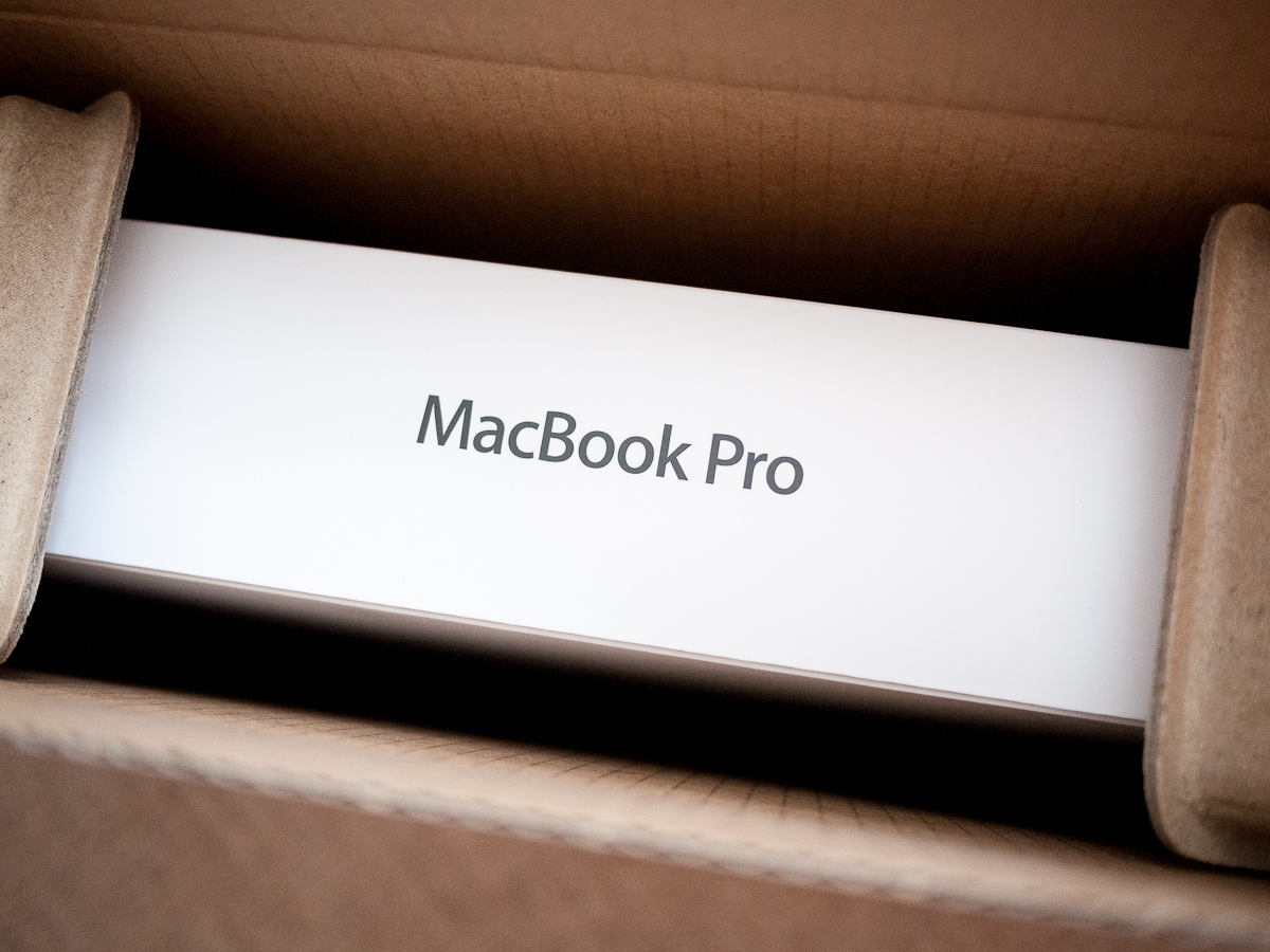Not cheap is it, especially here in the UK where the base model comes in at £1799 or roughly $2795 at today’s exchange rate. Still I suppose that’s what you get when you are, as Stephen Fry put it, ‘an early adopting sillyhead‘. I ordered my 2.3 GHz model with 8 GBs of RAM as soon as the UK Apple Store came back online following the WWDC Keynote. Months of pent-up desire for a new machine meant there was no hovering over the confirmation button as with previous purchases, my blood was up, resistance would have been futile.