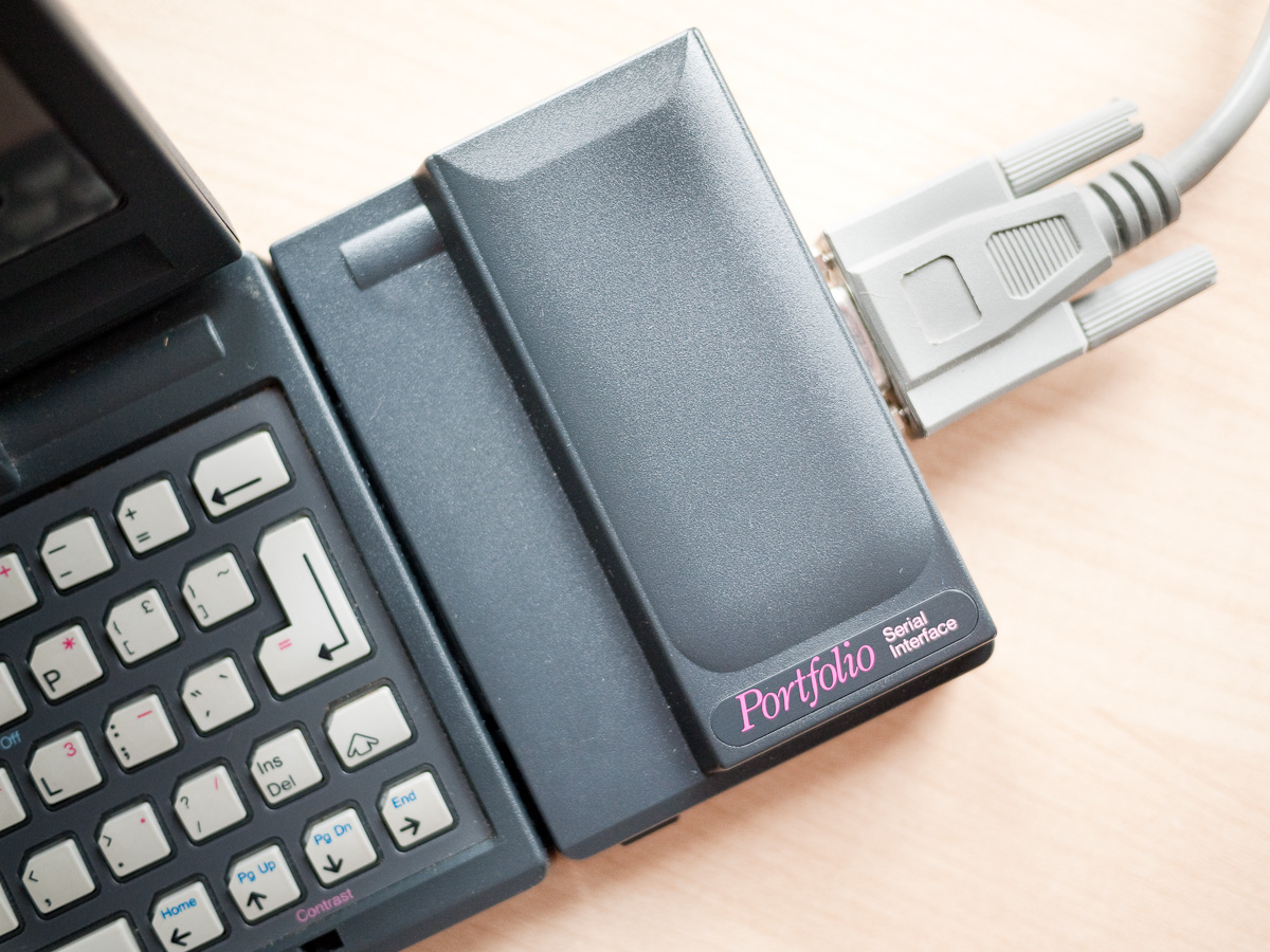 I’m still enjoying messing about with the Atari Portfolio and I’ve now finally got my hands on a serial interface. Much the same in appearance as the parallel interface the unit plugs into the Portfolio’s expansion bus and carries a male DB9 connector with fortunately, unlike some other retro machines, a standard pin layout.