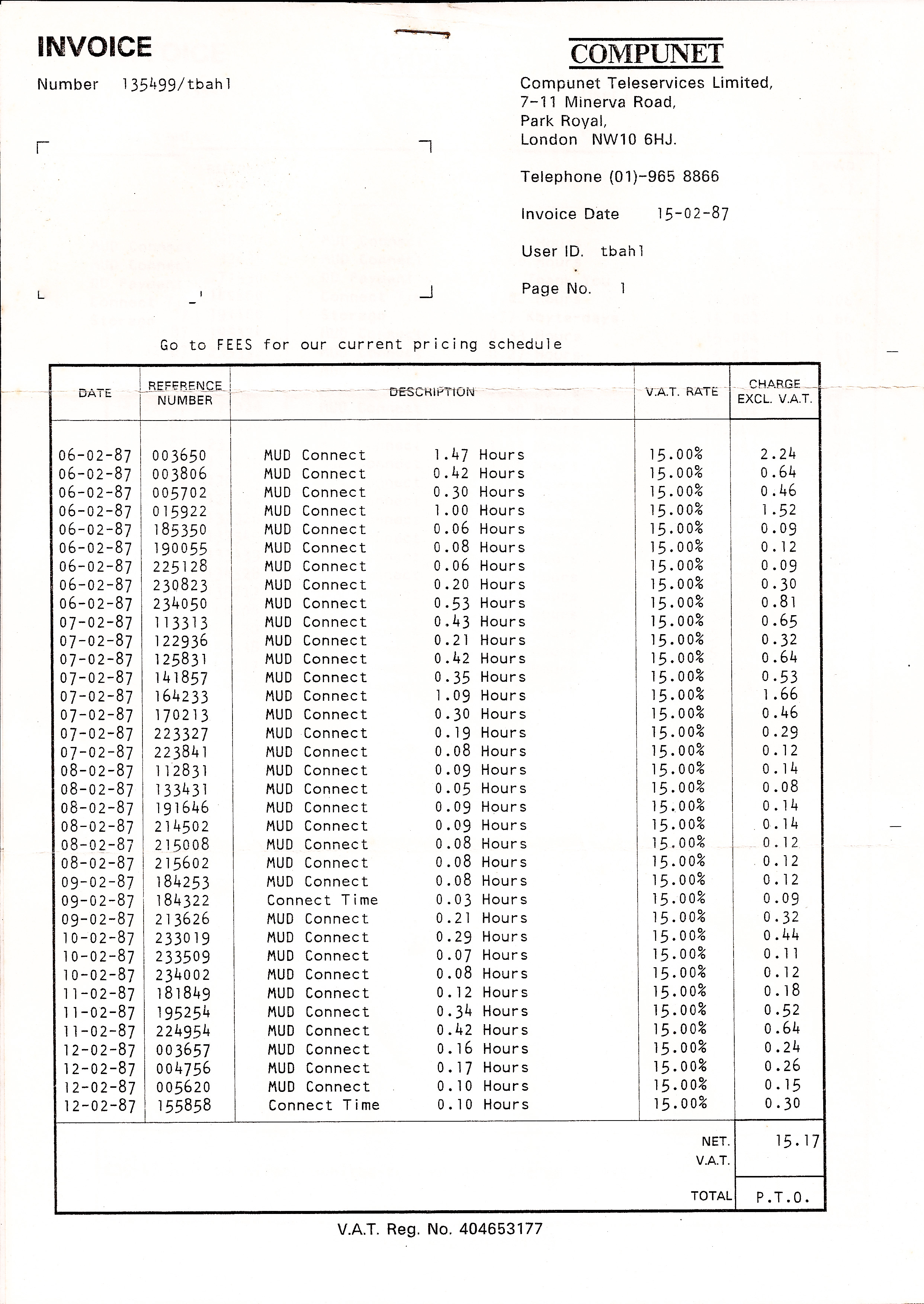 There were originally three subscription choices, Basic, Standard and Gold ranging in price from £7.50 to £15.00 per quarter. Access to the system was free of charge between 6 pm and 8 am although you still had to factor in your BT phone bill which typically ran at around £0.60 per hour. Access to online games such as M.U.D. cost an additional £1.75/hour.