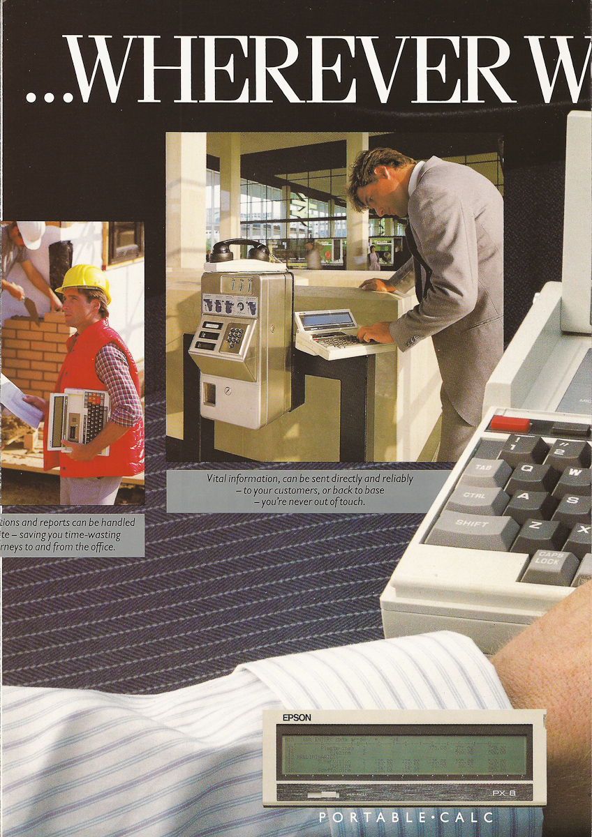 In my previous blog entry I posted some scans of some promotional literature for the PX-8 and it occurred to me that I’m now in possession of the all the hardware shown in the image opposite. I thought therefore it might be interesting to try to recreate the shot.