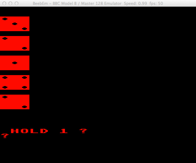 Anyway, the next challenge was to see if I could run the code. Nostromo BBS user Stuart Johns pointed me in the direction of BeebEm, and I found a Mac version courtesy of Jon Welch.